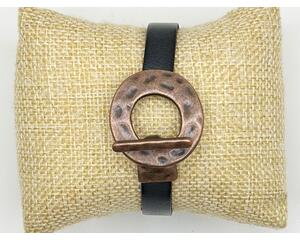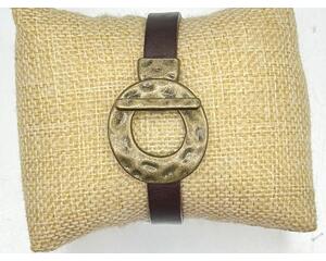 Stunning Genuine Leather Wrap Bracelet with an Antique Bronze Hammered O Toggle Bar Circle Hook Clasp.